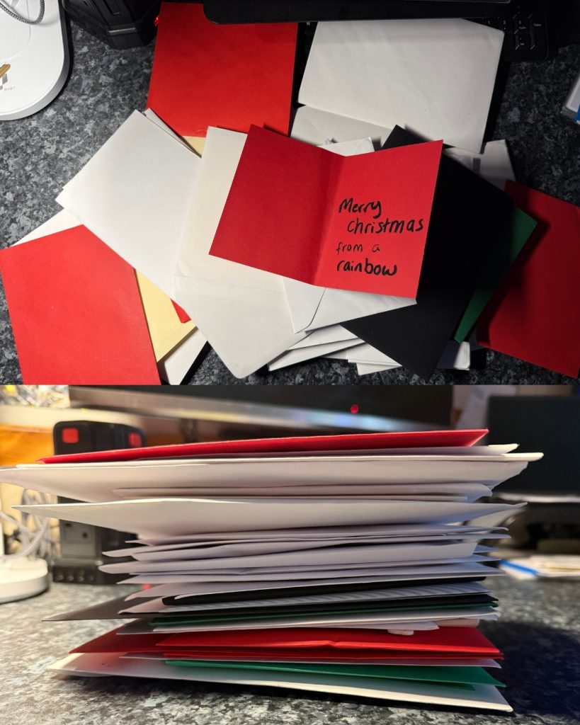 A very special thank you has to go to the Dounby Rainbow’s and The Kirkwall Girlguides for their very thoughtful delivery of 40 handmade cards. These will go to as many of the women as we can with their Christmas gifts. What an amazing job you’ve all done!